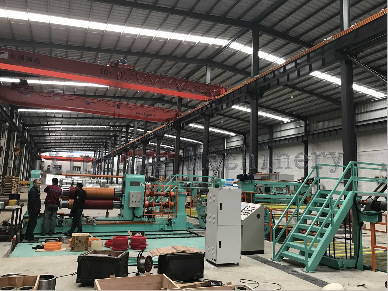 【概要描述】客戶在驗(yàn)貨試機(jī)中,開(kāi)卷機(jī)最大承重30T,縱剪線長(zhǎng)達(dá)29米,全線速度高達(dá)200m/mine。從做工上我們嚴(yán)格要求,大到組裝、噴漆力求完美,小到每個(gè)零件銜接無(wú)暇,別小看這臺(tái)1850mm分條線,它的適用厚度在0.7-4.2mm,板寬300-1800mm,4.2mm的卷料最大可分20條。?我們追求的目標(biāo)——讓每臺(tái)出品的設(shè)備都成為樣板!