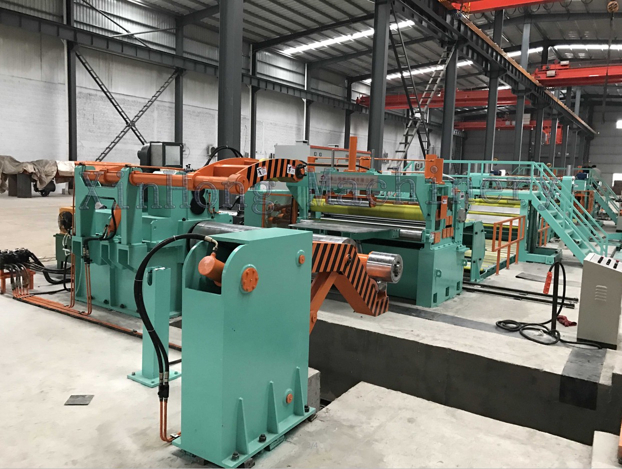 客戶在驗(yàn)貨試機(jī)中,開(kāi)卷機(jī)最大承重30T,縱剪線長(zhǎng)達(dá)29米,全線速度高達(dá)200m/mine。從做工上我們嚴(yán)格要求,大到組裝、噴漆力求完美,小到每個(gè)零件銜接無(wú)暇,別小看這臺(tái)1850mm分條線,它的適用厚度在0.7-4.2mm,板寬300-1800mm,4.2mm的卷料最大可分20條。